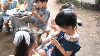 駅前という立地の中ですが、小さくとも自然あふれる園庭でいのちについて学びます。
